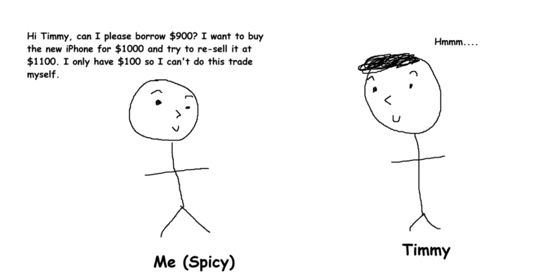 于是你找到富人 Timmy,向他借 900 美元,以便进行这笔 iPhone 交易。