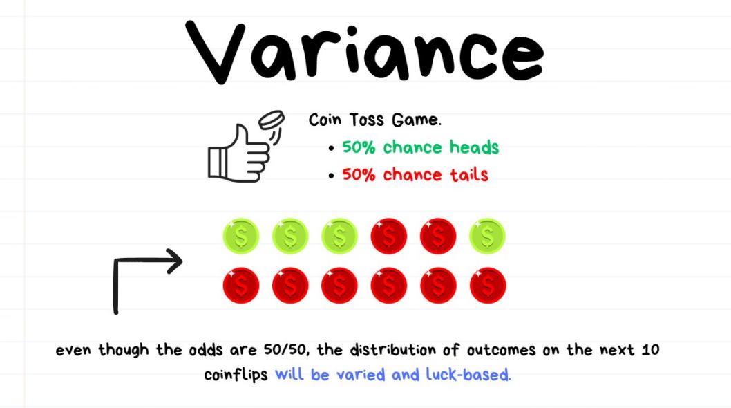 这些情况的发生,都源于方差(或运气)。仅凭单次交易结果判断交易是否正确是不可取的。