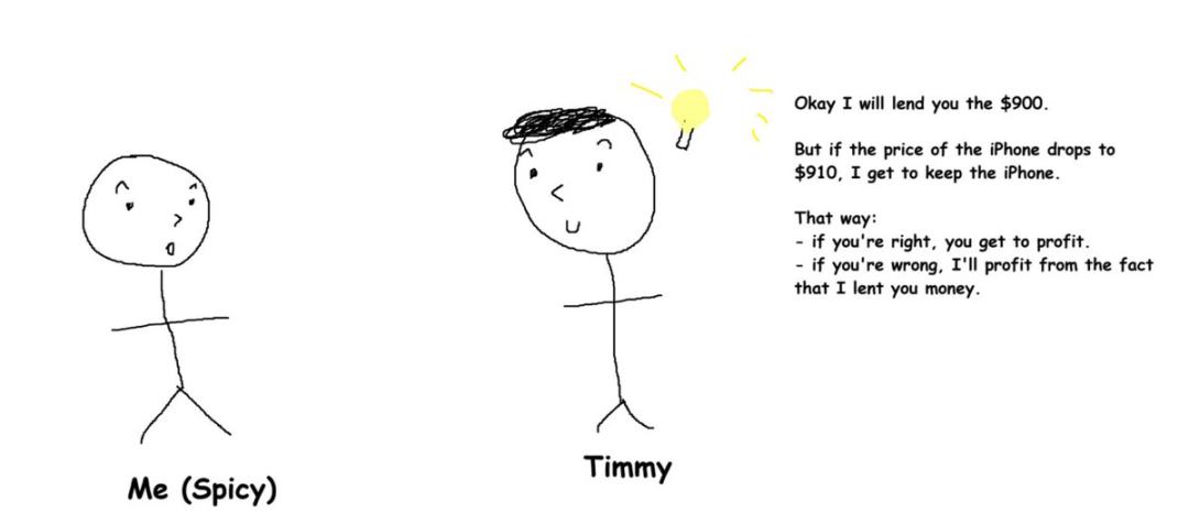 如果蒂米借给你 900 美元后,iPhone 价格跌至 900 美元以下,即使你卖出 iPhone,也无法全额偿还 Timmy 的借款,Timmy 会无端亏损,而他不愿承受这种损失。