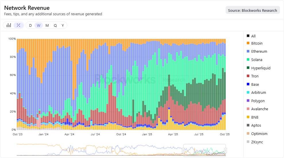 Hyperliquid 2025 年第三季度年化收入与核心贡献者浮动增长一年期分析
