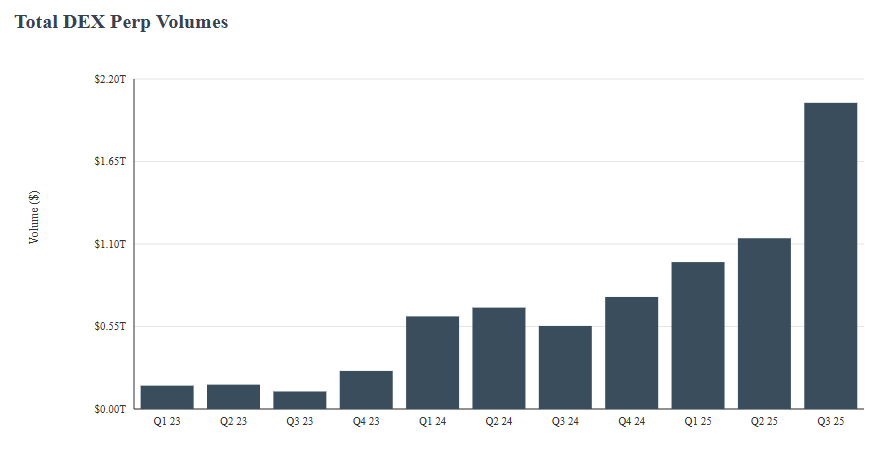 Hyperliquid 永续交易量季度环比增长