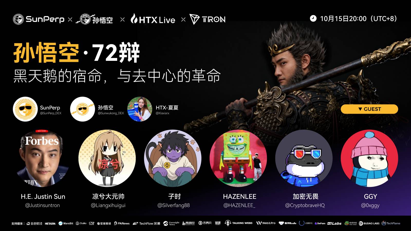 10 月 15 日,全球首个中文去中心化合约交易平台孙悟空的一场X Space再次吸引了加密市场的目光。项目顾问孙宇晨同凉兮、子时等众多知名KOL 共聚一堂,围绕极端行情后的市场格局、平台产品进展以及未来生态战略展开深入讨论。