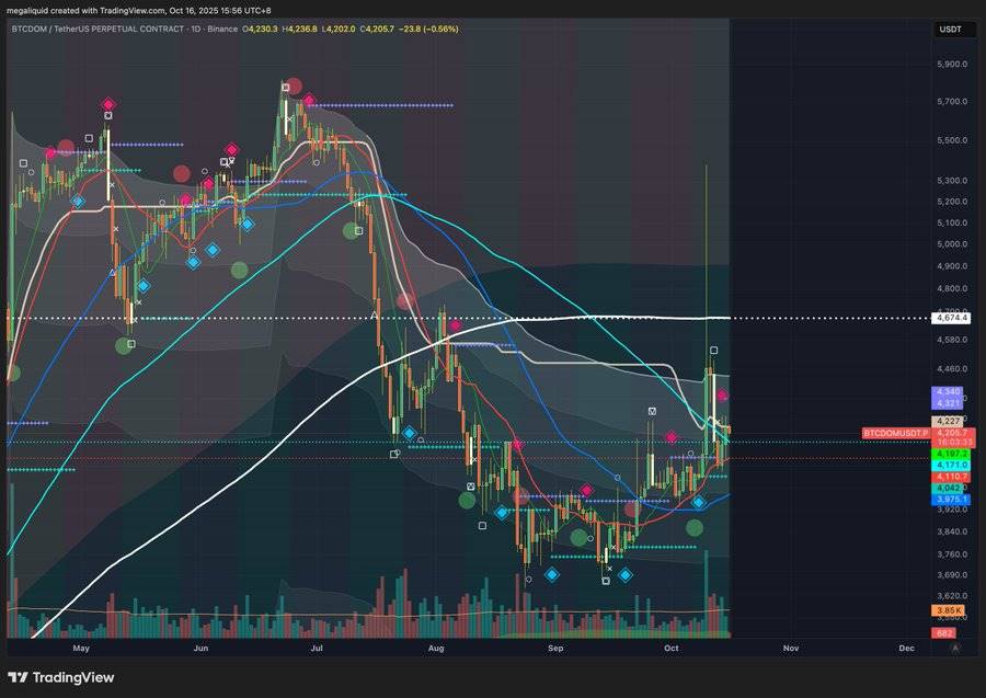 做多比特币主导率(BTC DOM): 我认为去美元化对比特币相较其他山寨币的影响更大。随着最近的“黑色星期五”暴跌,很明显比特币是唯一一个真正具有订单簿流动性和买盘的资产,而比特币主导率目前看起来正在上升趋势中。如果我看到山寨币表现良好,我可能会停止这一交易,但通常这是在比特币创历史新高之后,而这应该会进一步提升比特币主导率。