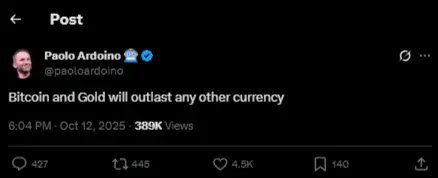 通訊事件橫跨 2025 年 10 月 12–15 日,公開評論稱比特幣與黃金將比多數法幣更長壽,並暗示將持續以利潤配置 BTC、擴展開源錢包工具。對比特幣而言,全球最大穩定幣發行人的背書重要,因 USDT 的深度是全球 BTC 流動性的關鍵管線。若部分利潤持續回補 BTC,能為去槓桿期提供背景買盤;風險在於市場管線集中於單一發行人,政策制定者將關注。短期能源錨定貨幣與代幣化美元的敘事並存,該發行人的庫存決策將放大週期波動。觀察重點為儲備證明、錢包工具發布與任何影響儲備配置與 BTC 購買的政策指引。