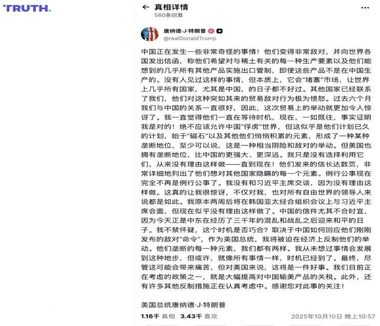 2025年10月11日的市场剧震,已被业内冠以“1011事件”之名。这场单日爆仓超190亿美元、比特币一度暴跌15,000美元的极端行情,并非孤立事件,而是宏观政治、市场结构性脆弱与局部触发机制叠加作用的结果。其复杂性和破坏力,让人不禁联想到2008年全球金融危机的雷曼时刻。以下,我们从宏观背景、市场脆弱性、触发机制、传导链条与清算机制几方面,梳理此次危机的深层逻辑。全球宏观:特朗普关税政策与中美贸易冲突。2025年下半年,全球经济已经处于高压状态。美国在经历数轮加息与赤字扩张后,财政可持续性问题备受质疑,美元指数持续维持高位,全球流动性趋紧。在此背景下,10月10日深夜(美东时间),特朗普突然宣布对中国所有进口商品征收100%关税,不仅远超市场预期,更是将中美贸易冲突从“结构性摩擦”升级为“全面经济对抗”。这一政策瞬间击碎了市场对“中美缓和”的幻想。亚太股市率先承压,美股期货盘前急跌。更重要的是,全球风险资产的定价逻辑被彻底打乱。对于高度依赖美元流动性与风险偏好的加密资产而言,这无疑是一次系统性冲击。可以说,宏观层面提供了“黑天鹅”的外部冲击,成为1011事件的最初导火索。此外还有市场脆弱性:流动性紧张、过度杠杆、情绪透支等因素。然而,任何外部冲击能否演变为危机,还取决于市场自身的脆弱性。
