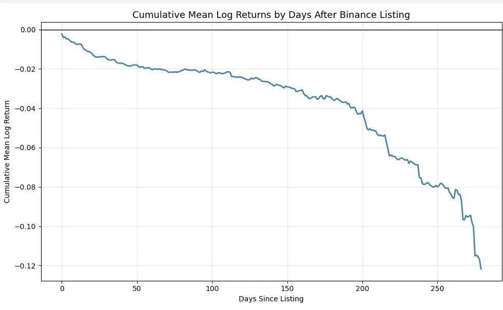 H₀:「币安是邪恶的,对交易所上市的项目来说是负面的。」