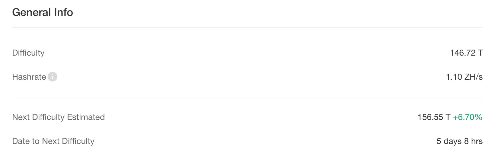 过去七天,比特币网络哈希率整体呈现波动,本周哈希率维持在 1014.88 EH/s 至 1172.14 EH/s 区间,处于相对高位。截至10月24日,全网算力达到 1.10 ZH/s,挖矿难度为 146.72 T。预计下一次难度调整将在10月29日 进行,预估上调约 6.70%,调整后难度约为 156.55 T。总体来看,全网算力维持高位,但波动加大,显示矿工在价格和成本压力下仍保持活跃挖矿。