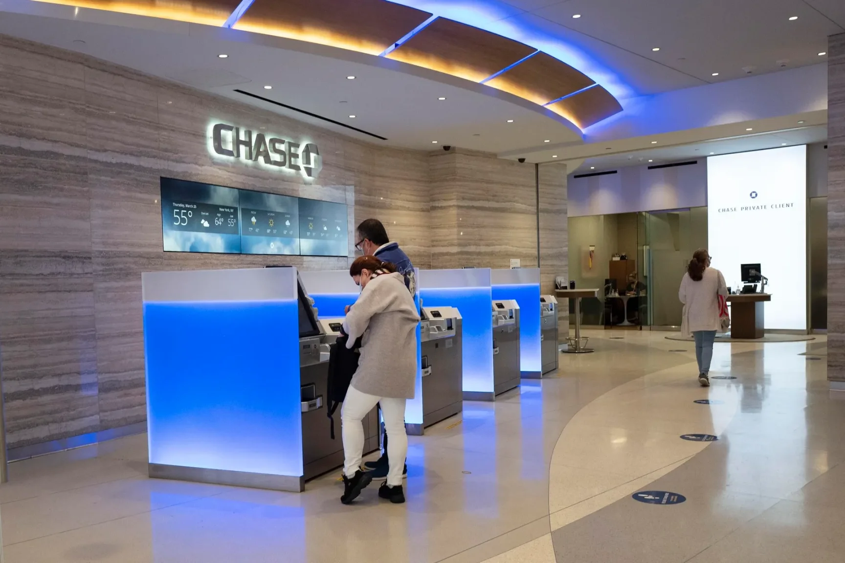 2021 年 3 月 25 日,美国纽约的一家大通银行网点