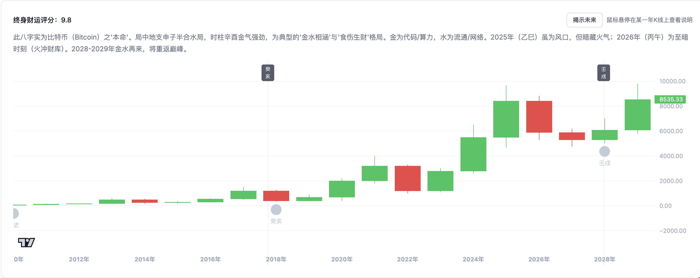 一位熟悉各类宏观指标的币圈交易员最终也走上了玄学的道路,最近给BTC算了一下八字,大事不妙:火冲财库,2026年(丙午)为比特币的至暗时刻。吓得我赶紧看了一眼自己的钱包,还好,里面本来就没币。