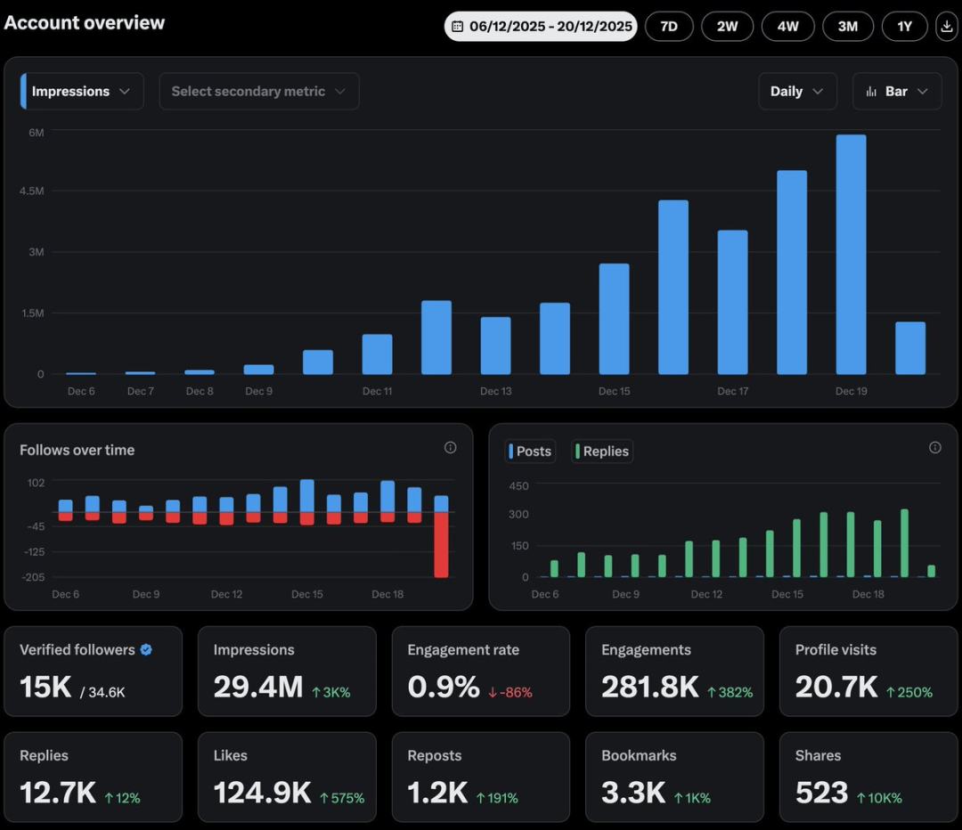 这是一条警示。2025 年的今天,还在 X 平台刷曝光量的人,既算不上抢占先机,也谈不上埋头苦干,不过是机器人流量的接盘侠。