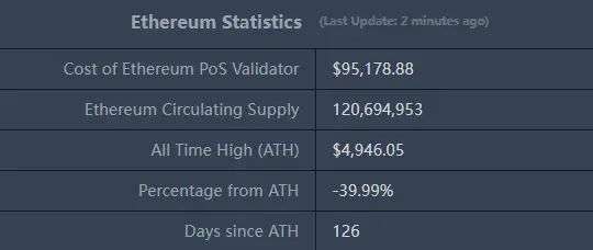 ETHUSD :现价2,972美元,历史最高价4,946.05美元,距最高价跌幅约39.99%