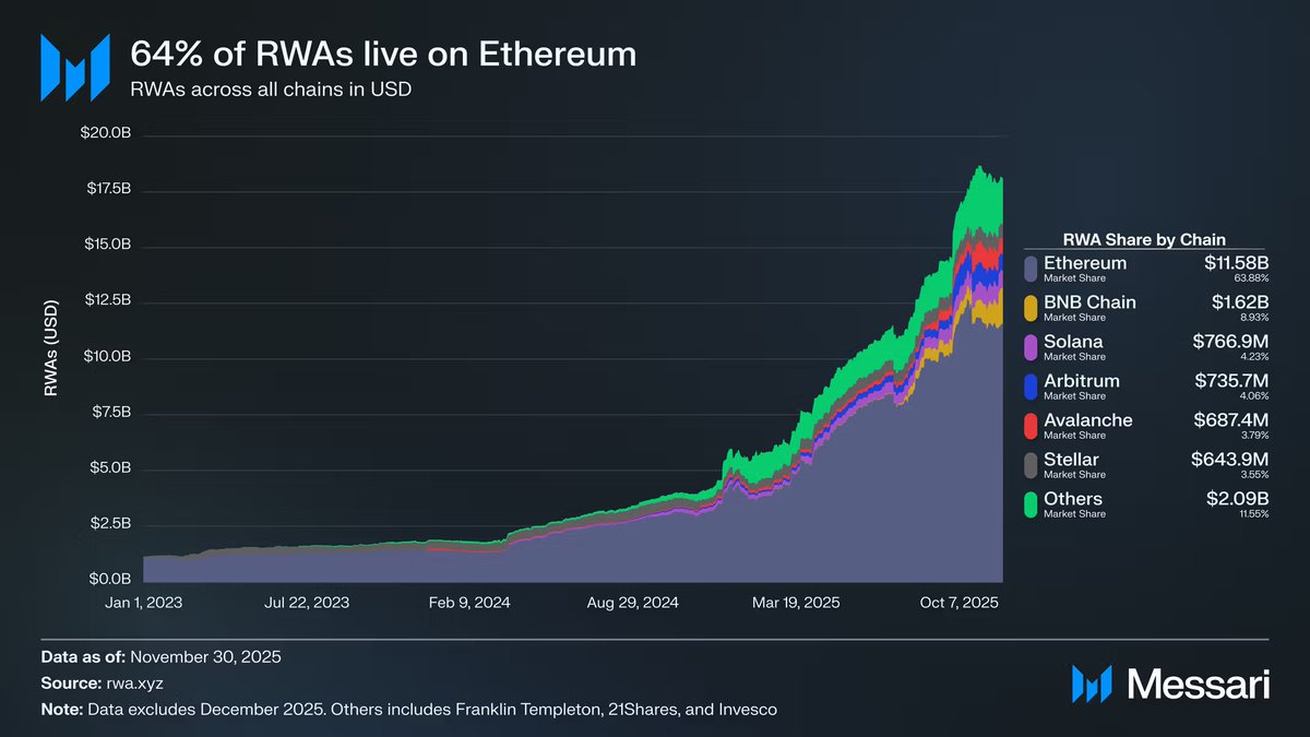 稳定币发行、Tokenized T-bills、链上基金份额、合规托管路径, 这些最“无聊”、但最关键的金融基础设施, 仍然高度集中在 Ethereum 生态。