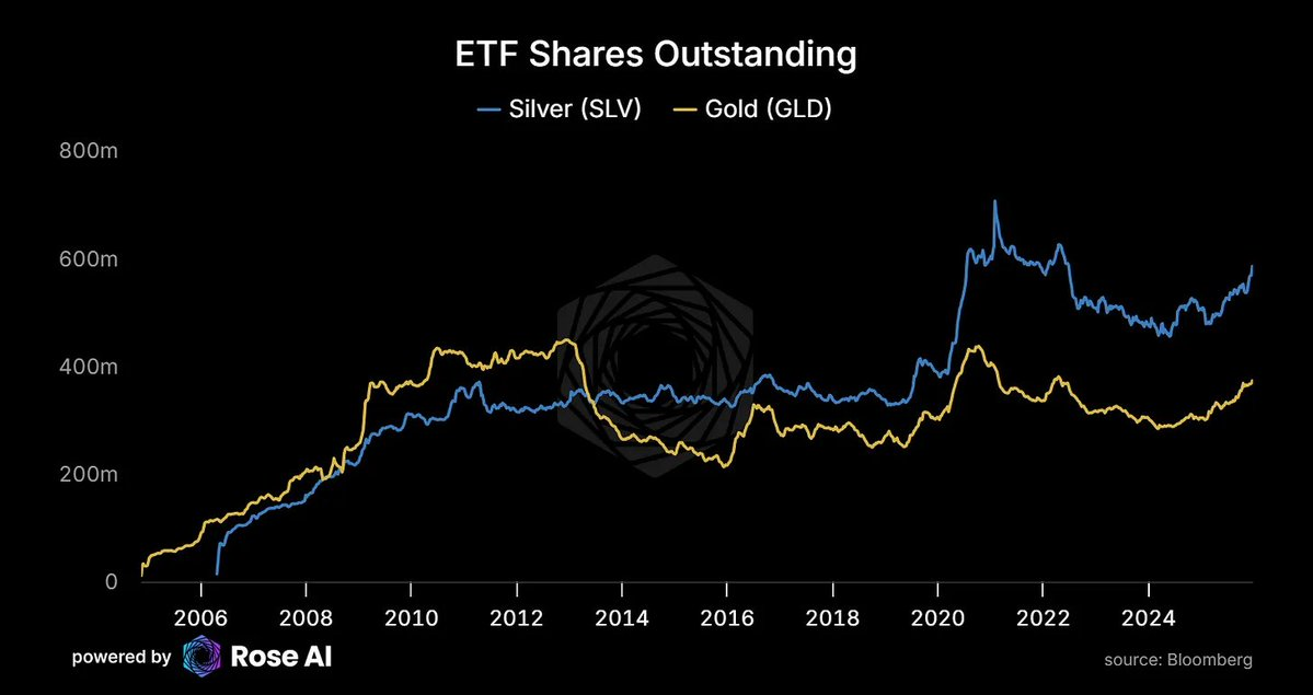 SLV ETF 的流通股数在经历了多年的资金外流后,正在再次上升。价格上涨的同时,需求也在增加。
