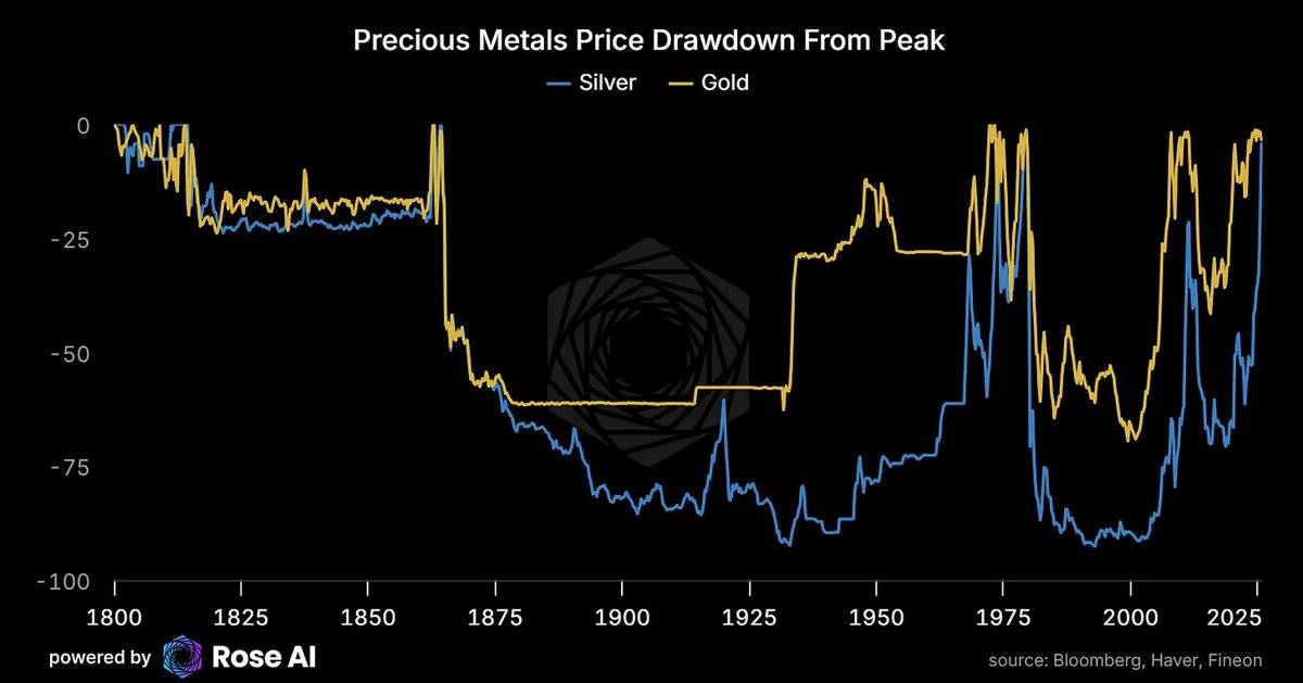 请不要对即将到来的“阴线”感到惊讶,它很可能会发生。关键在于,你是否会选择在低点买入。我们已经将部分“Delta”(即价格敞口)转移到黄金上,重新调整了交易组合,目前持有约 15% 的黄金头寸和 30%-40% 的白银头寸,而此前这个比例更接近 10:1。