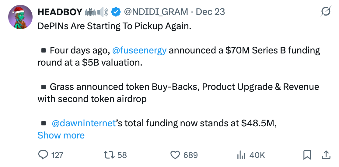 我们曾在 2024 年见证了去中心化物理基础设施(DePINs)的崛起,然而随后在 2025 年经历了急剧的下滑。但我相信,明年它将迎来全面释放潜力的时刻。
