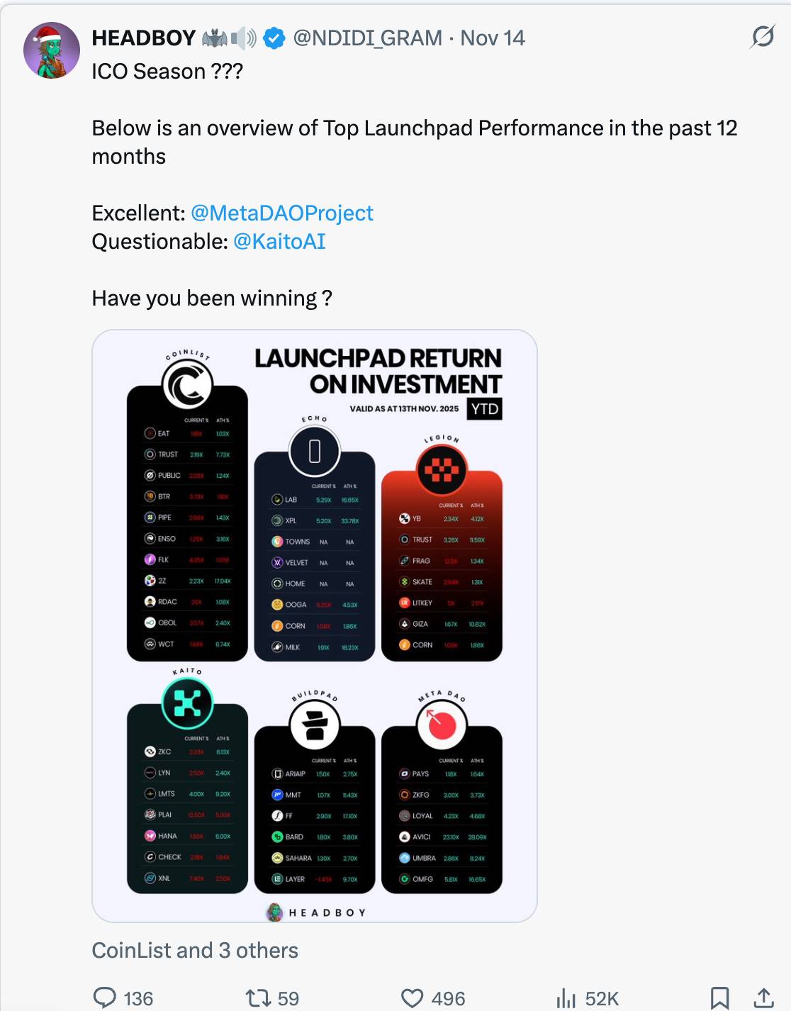2025 年 11 月 14 日,我曾基于这些平台的表现分析了 Launchpad 的现状: