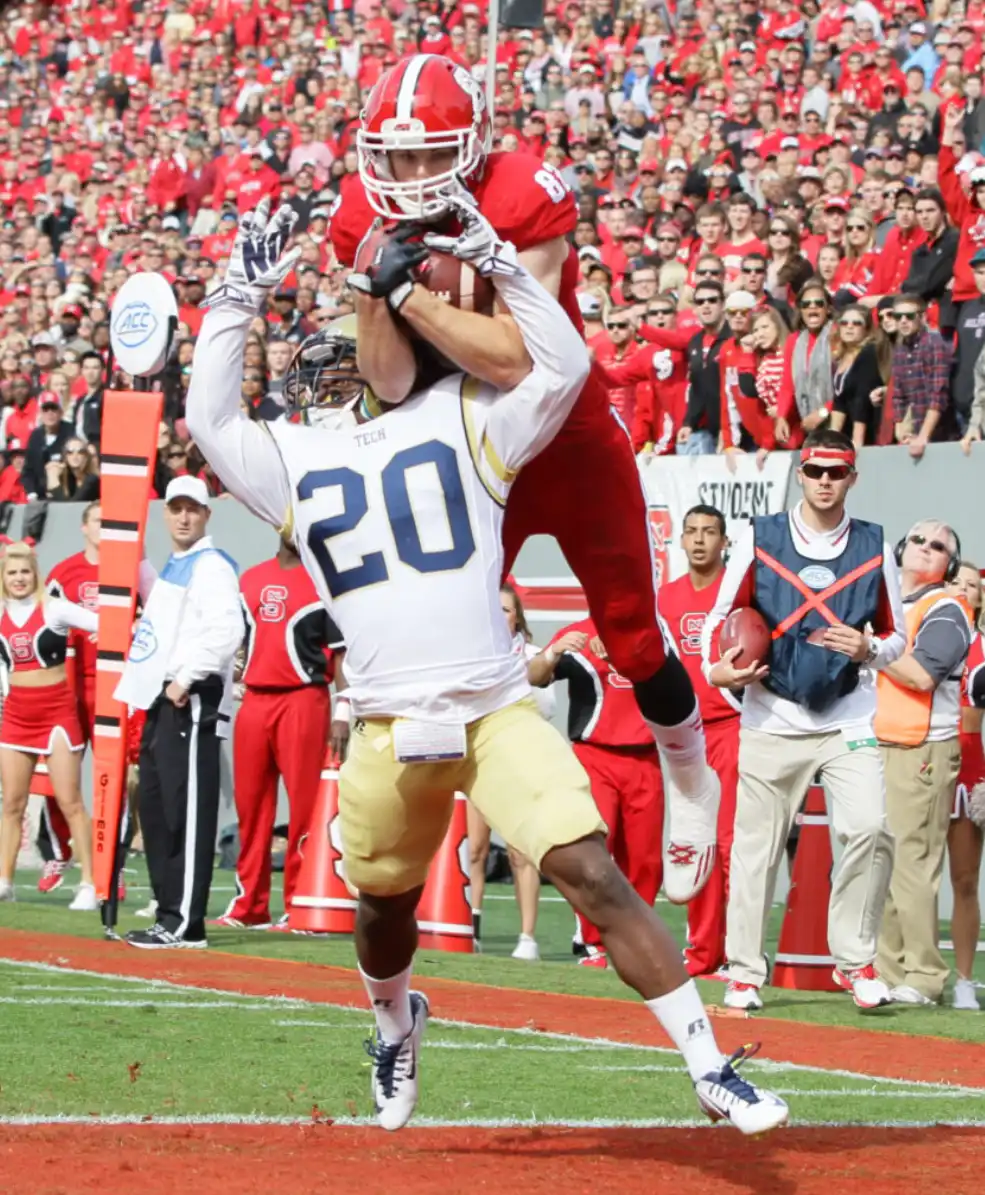 Bo Hines(红衣)在打橄榄球图源:Yale Daily News