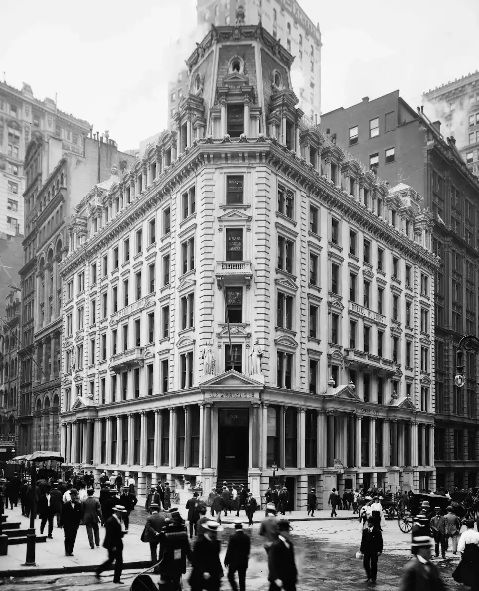 然而,银行家约翰·皮尔庞特·摩根用实际行动改变了形象:一边帮政府发行国债、解决财政危机,一边帮铁路公司重组债务。久而久之,它从「资本寡头」变成了「国家的金融代理人」。