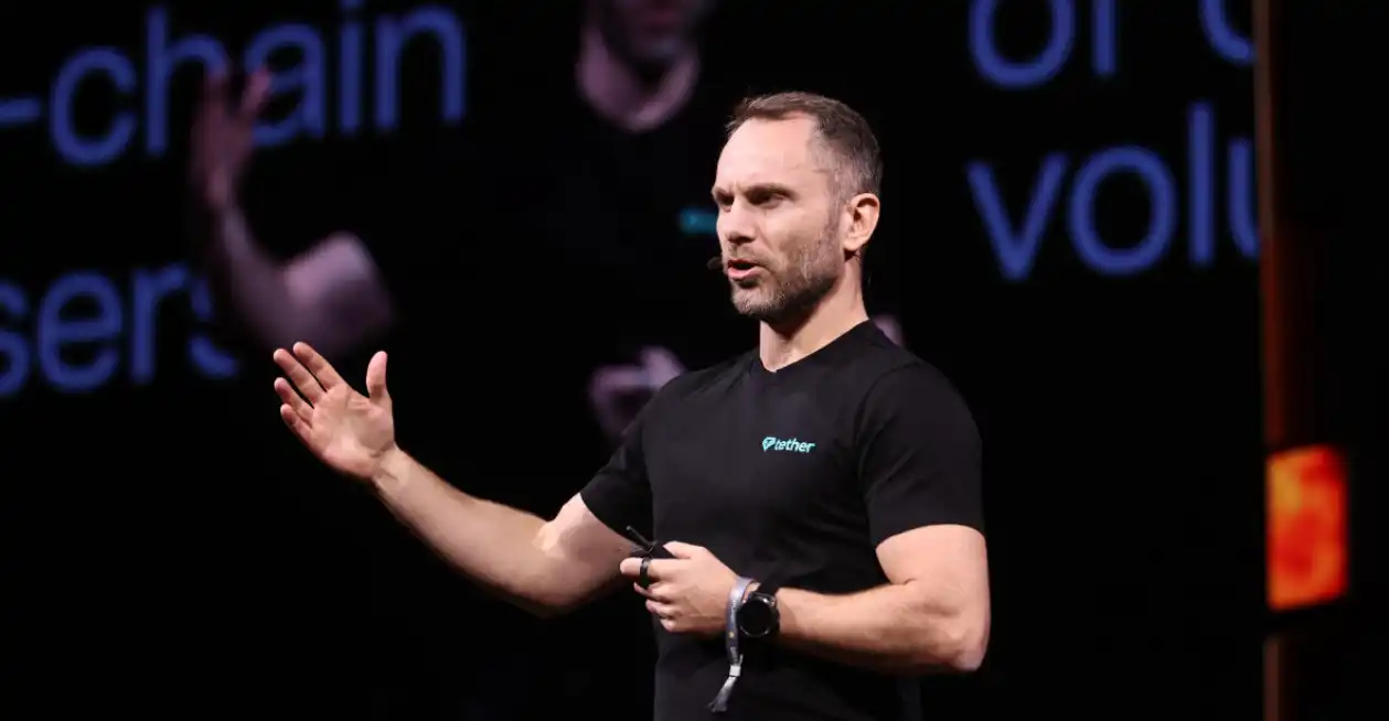 Tether 的 CEO Paolo Ardoino 在拉斯维加斯 2025 年比特币大会上发言图源:Nasdaq