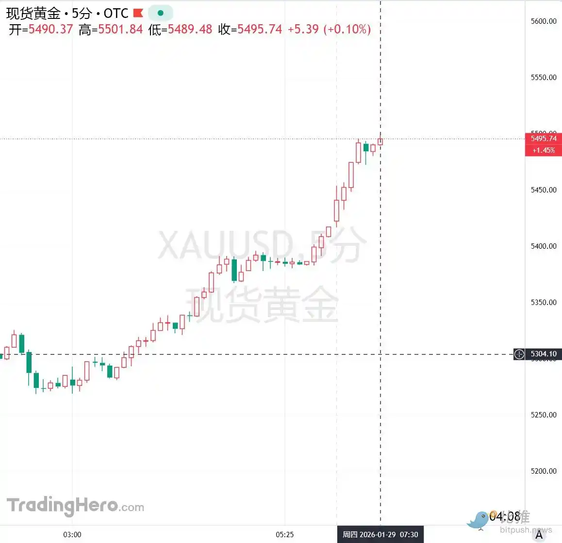 利率决议公布后,现货黄金价格一路飙升,首次突破 5500 美元/盎司大关。短短四个交易日内,金价从略低于 5000 美元一路上行,连破多道整百关口,累计上涨超过 500 美元,周涨幅达到 10%。这一速度和幅度,使黄金成为当下全球市场毫无争议的主角。