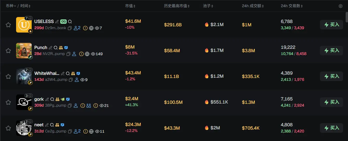 过去 24h Solana 热门代币前五依次为:USELESS、Punch、WhiteWhale、gork、neet