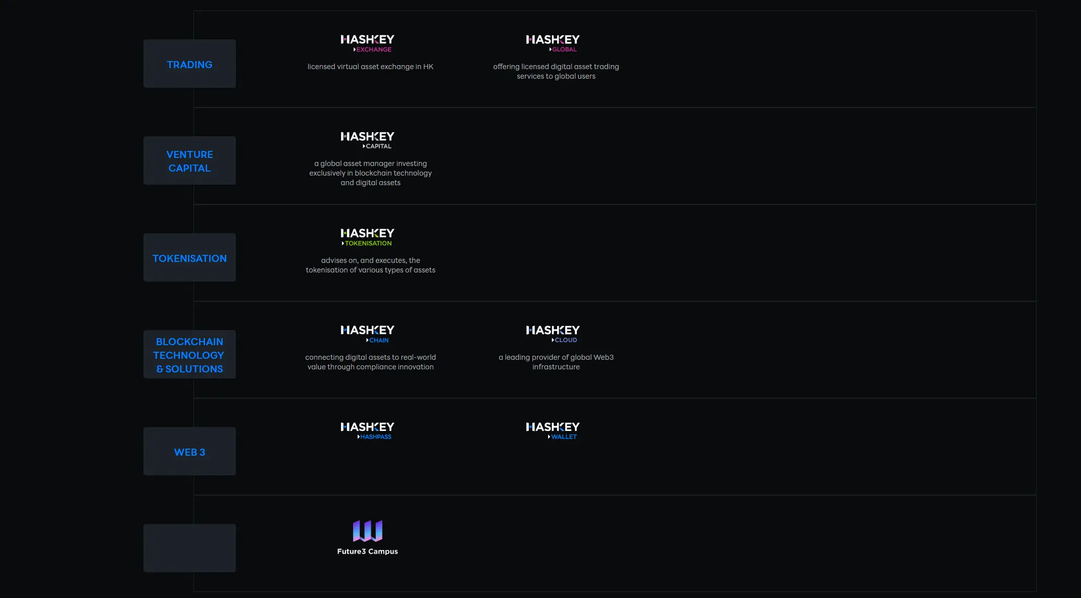 - HashKey 所构建的,是一个围绕交易、公链与平台代币运转的 Web3 原生生态网络,核心逻辑是「流量×生态」:有了生态就有流量,有了流量就有估值,有了估值就能反哺生态,试图在香港合规的框架内,复刻币圈最经典的增长神话;