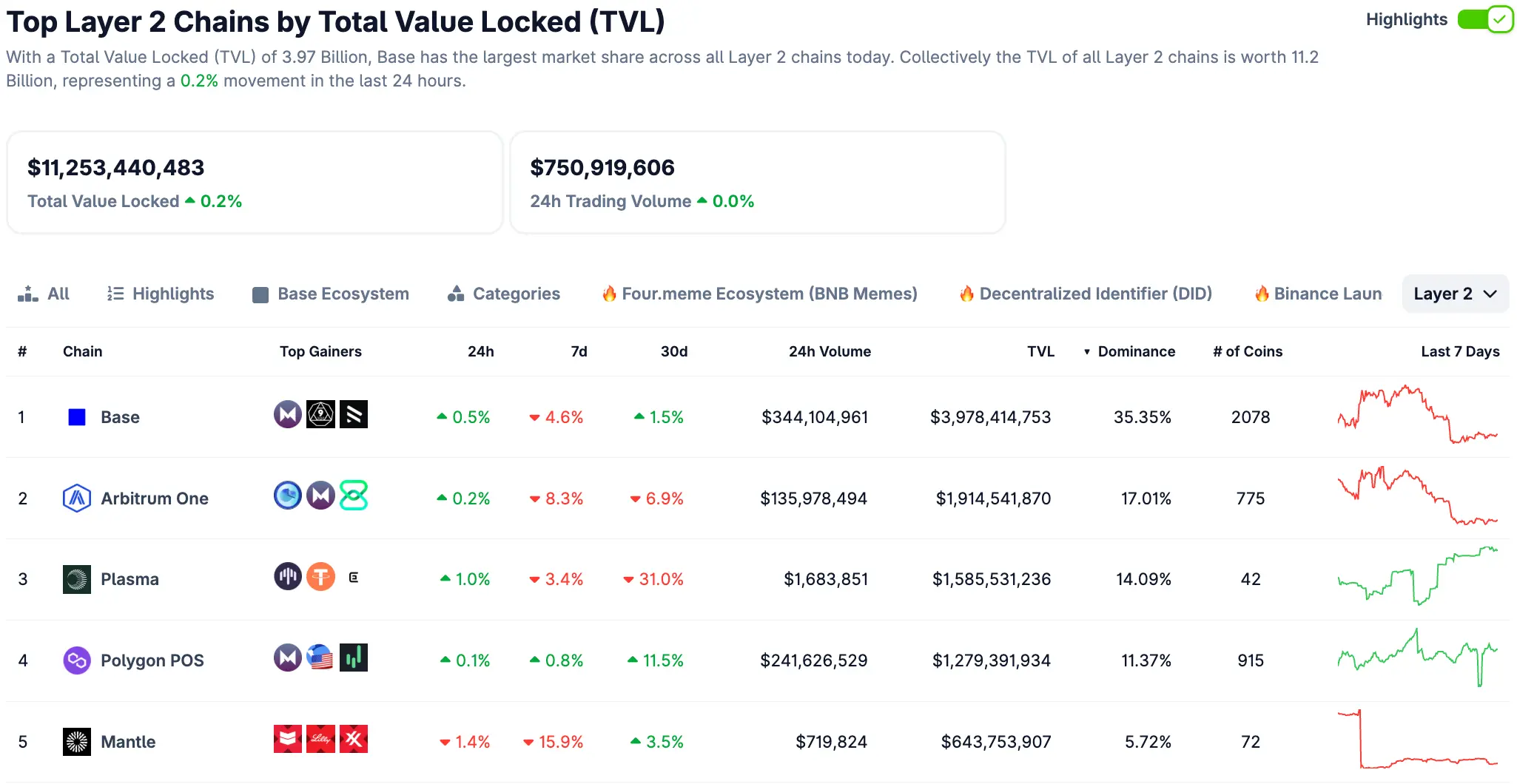 数据来源:CoinGecko, https://www.coingecko.com/en/chains/layer-2
