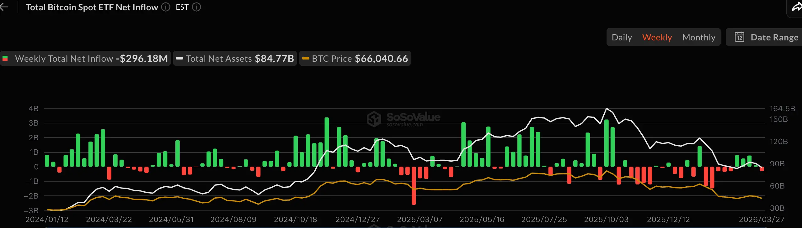 截止至发稿,美国比特币现货ETF累计总净流入约559.3亿美元,本周净流出2.96亿美元;美国以太坊现货ETF累计总净流入约115.2亿美元,本周净流出2.06亿美元。