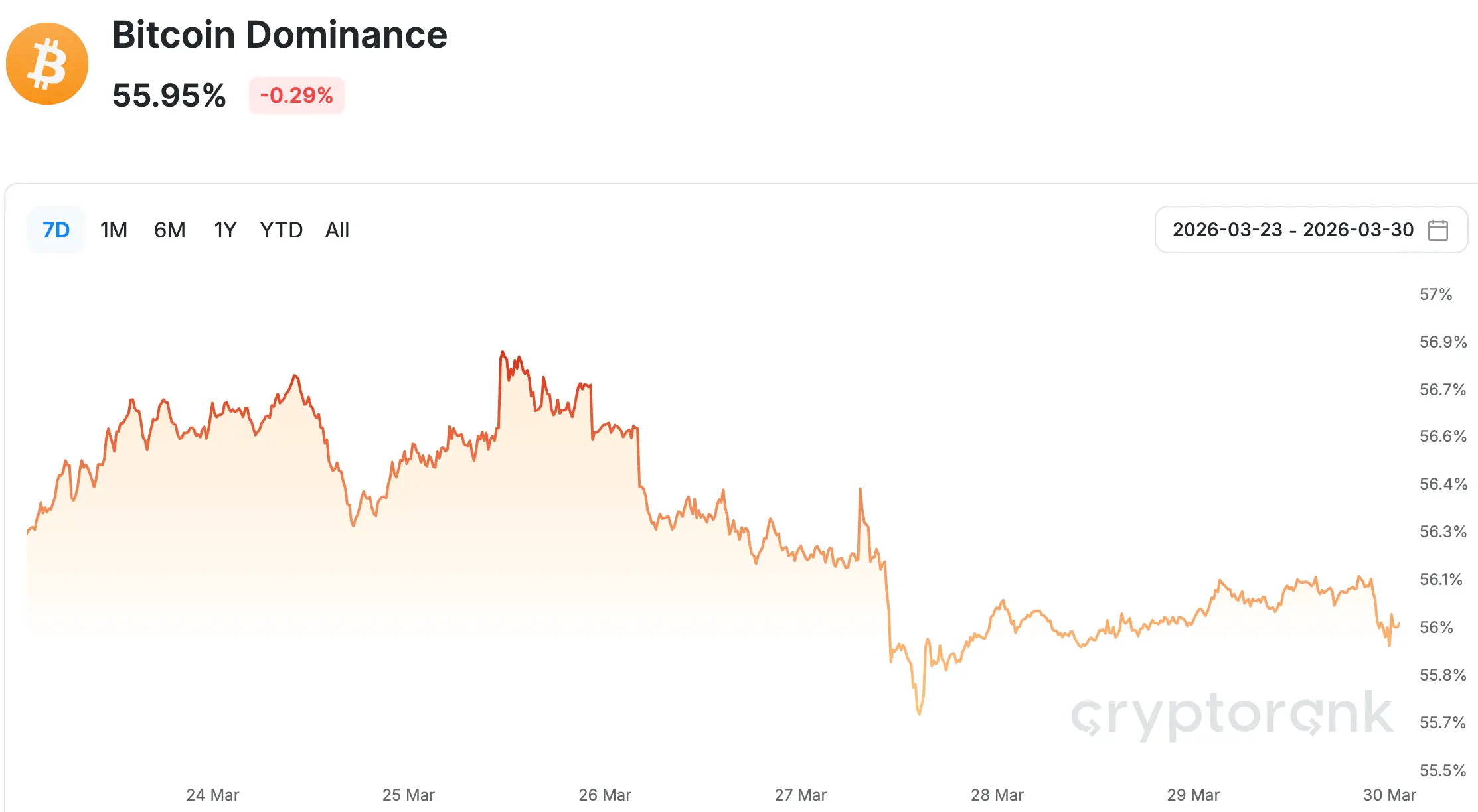 数据来源:Bitcoin dominance from cryptorank, https://cryptorank.io/charts/btc-dominance