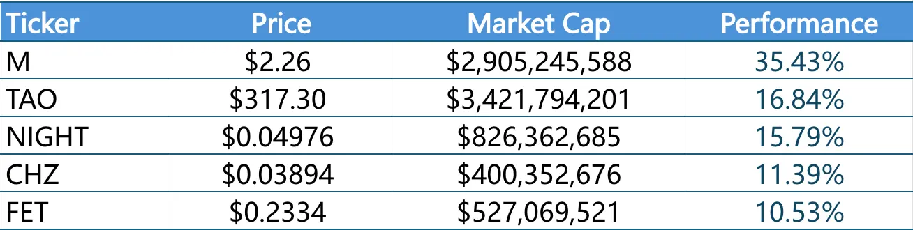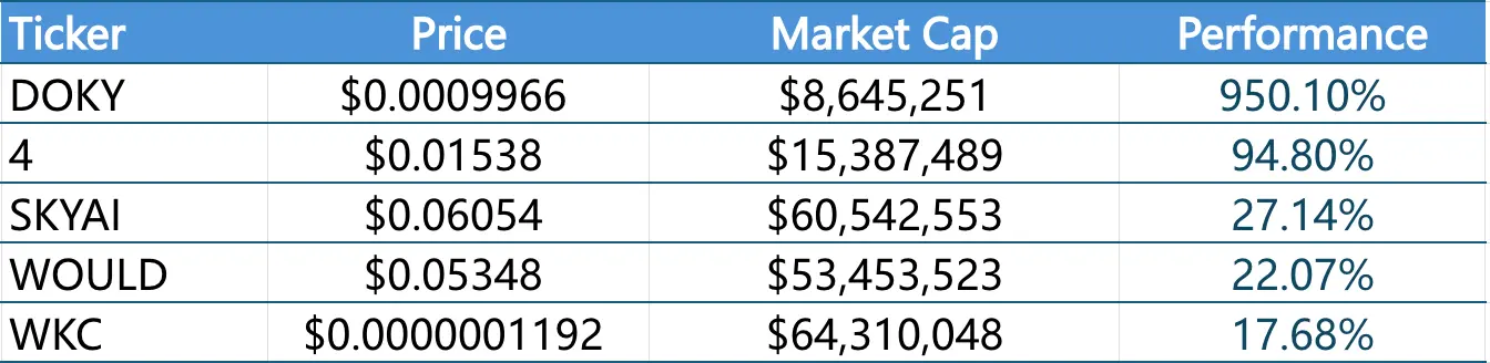 过去一周内涨幅前五的Meme币