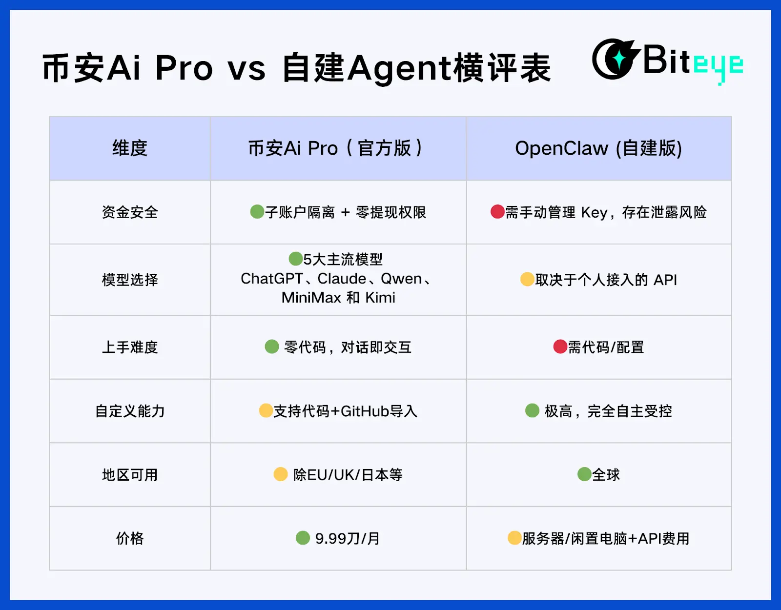 四、综合横评:币安Ai Pro vs 自建 Agent
