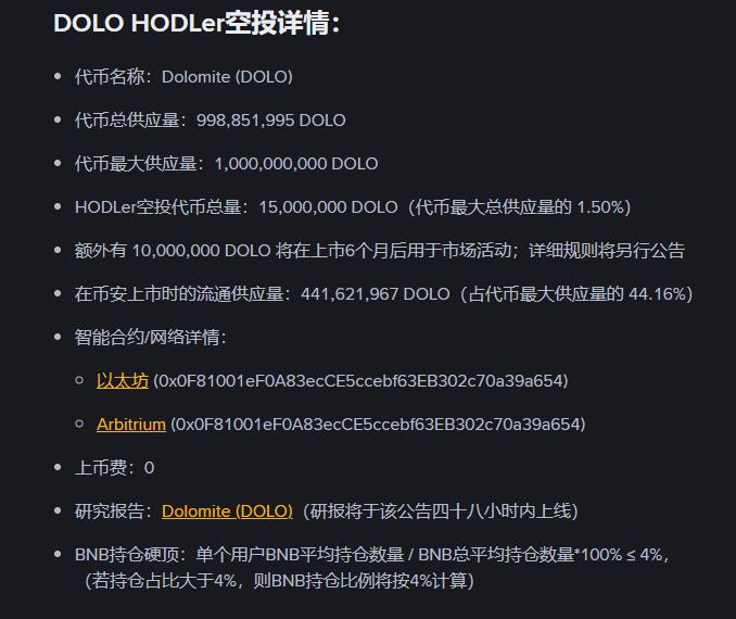 币安HODLer空投现已上线第33期项目 – Dolomite (DOLO), 一种去中心化的货币市场协议和 DEX。此次空投如何使BNB Holder受益,并附上此链接:https://www.binance.com/zh/bnb
