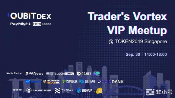 2025年9月30日,新加坡——在全球顶级加密盛会TOKEN2049期间,“Trader’s Vortex VIP Meetup”成功举办,吸引了来自全球的交易员、投资机构和行业领袖齐聚一堂,成为大会的重要看点之一。作为本次活动的赞助商,OKZOO在现场展示了其AIoT+HealthFi战略,并接受多家媒体专访,与行业精英展开深度交流。本次活动由Odaily、非小号、PANews等担任官方媒体伙伴。