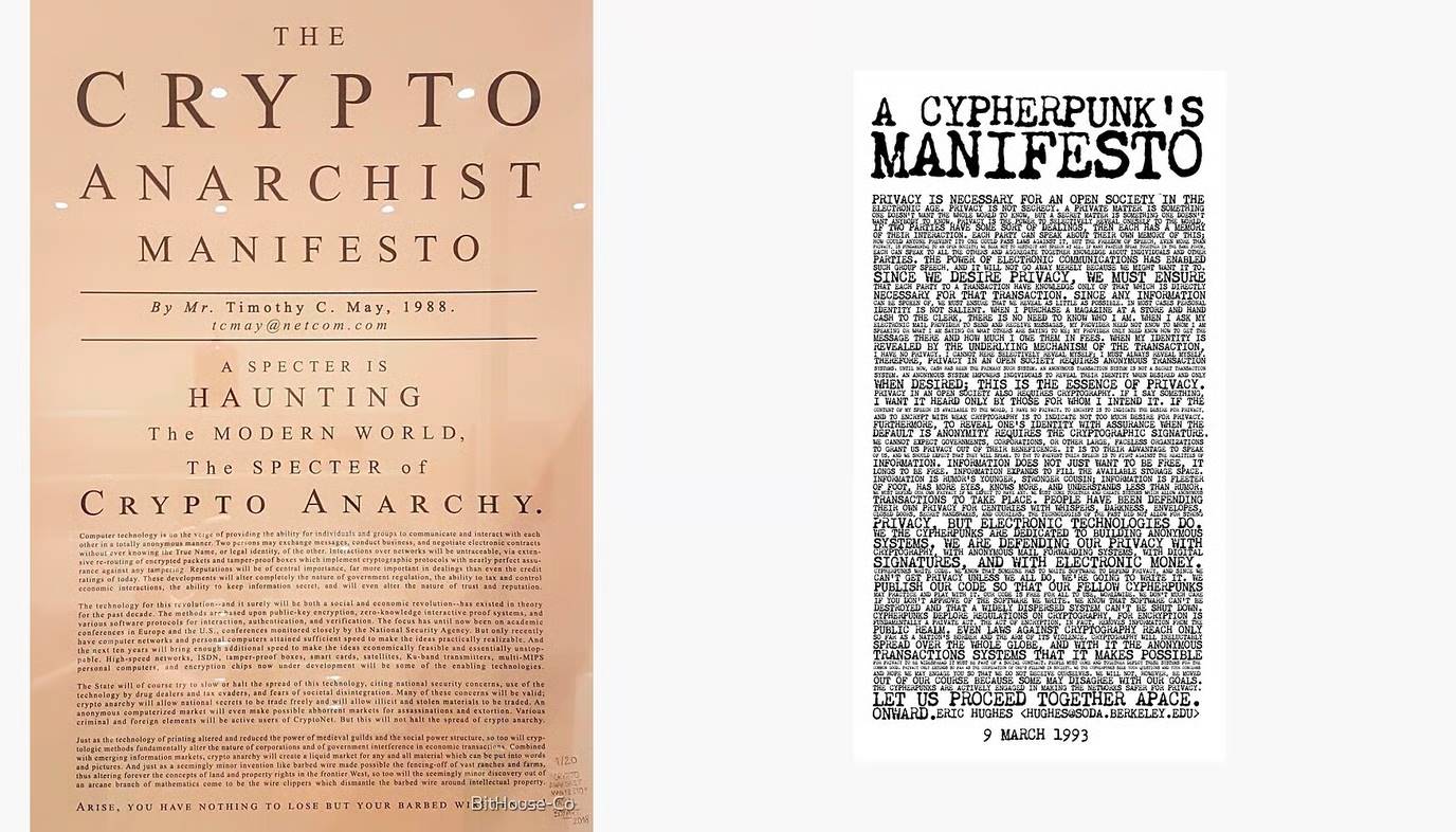 后续《密码无政府主义宣言》(The Crypto Anarchist Manifesto)和《密码朋克宣言》两份文件的发表为隐私赛道的诞生奠定了思想基础:“我们密码朋克致力于构建匿名系统。我们用密码学捍卫隐私。”