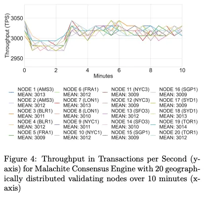性能表现方面,Arc 在 20 个地理分布式验证节点上实现了约 3000 TPS 的吞吐量及低于 350 毫秒的最终确认延迟;在 4 个地理分布式验证节点上更实现了超过 10,000 TPS 的吞吐量及低于 100 毫秒的最终确认延迟。