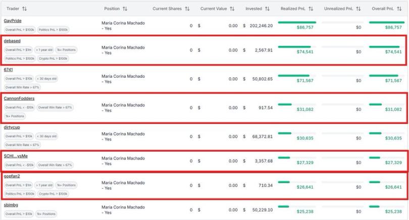 他们都是在 Maria Machado 的胜率开始神秘飙升时立即入场的。