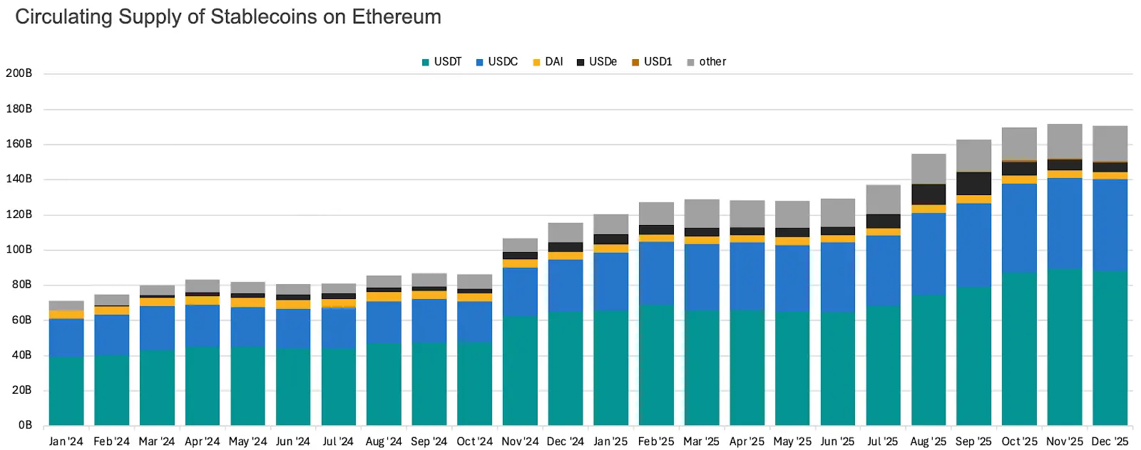 稳定币将在2026年进一步突破加密交易媒介范畴,演化为全球化的“数字现金层”。在美国《GENIUS法案》和欧盟MiCA等监管框架落地的推动下,合规稳定币(如USDC)将成为传统金融系统与链上世界进行大规模合规结算的首选管道,深度嵌入跨境支付、企业财资管理及供应链金融。生息型稳定币(如Ethena/USDe)将在波动市场中继续发挥“收益发动机”作用,但稳定性考验将更严峻。支付专用链(如Plasma)与体验优化协议(如Stable)将致力于解决稳定币在日常场景中的应用“最后一公里”。同时,稳定币发行方自建公链以掌控全栈基础设施的趋势将更加明显,形成围绕货币形态定义权的“轨道战争”。