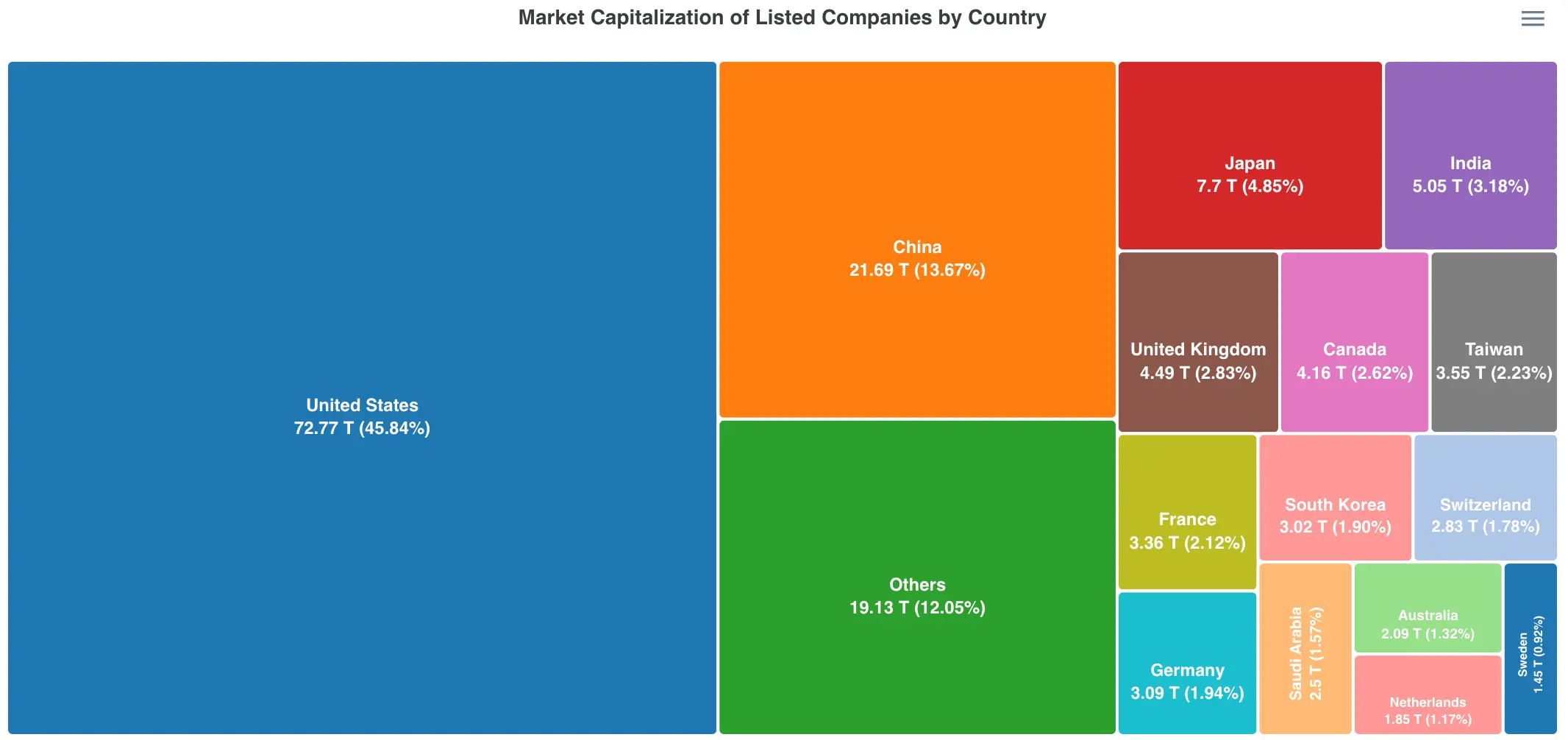 Figure 9. Market Capitalization of Listed Companies by Country – 2026. Source: https://www.marketcapwatch.com/overview
