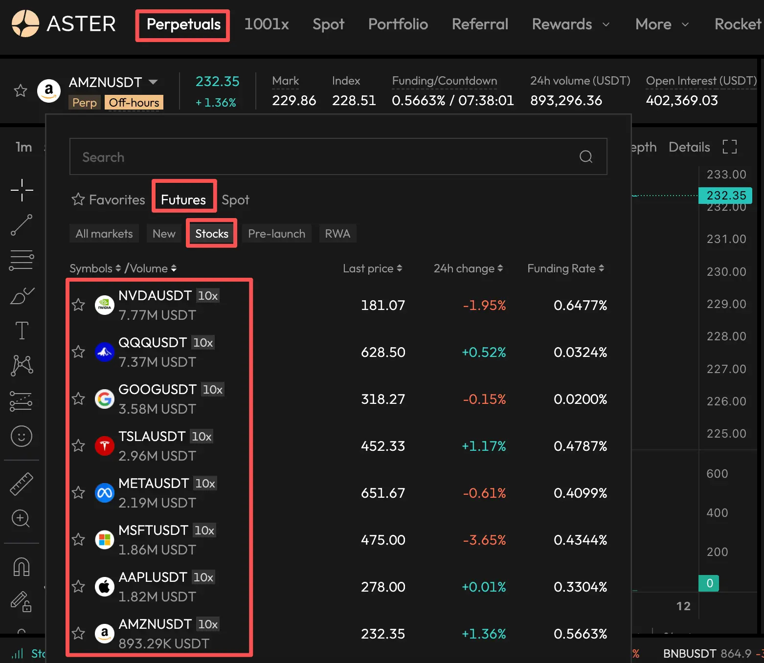 Figure 5. Aster pro mode stock perps. Source: https://www.asterdex.com/en/trade/pro/futures/AMZNUSDT