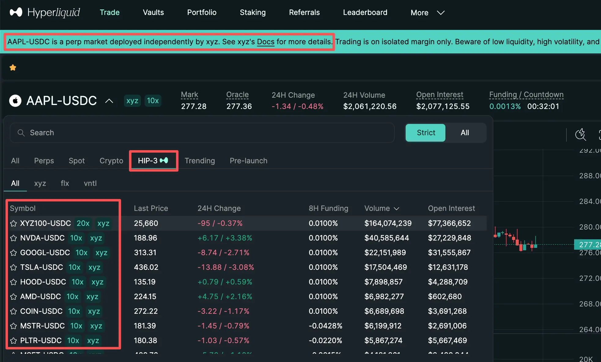 Figure 1. Hyperliquid stocks perp page. Source: https://app.hyperliquid.xyz/trade