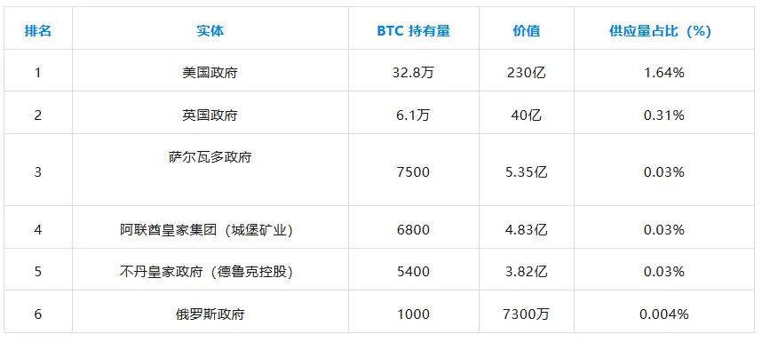英国持有 61,245 枚比特币。英国伦敦警察厅于 2018 年从 Jian Wen 和 Zhimin Qian 手中缴获了 6.1 万枚比特币,并于 2021 年 7 月获得了这些被扣押比特币的访问权限。